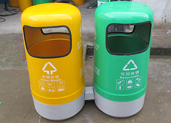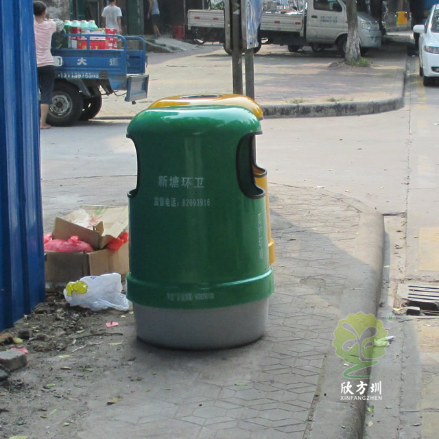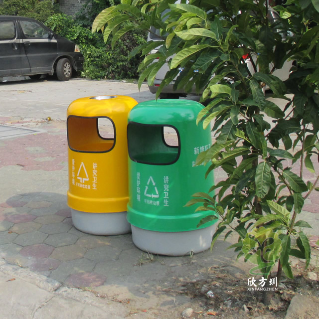 户外环卫玻璃钢分类垃圾桶采用优质玻璃纤维与进口树脂着色合成,采用模具一次成型。玻璃钢造型精美、洁净、美观、醒目、不退色,它具有强度玻璃钢小区分类垃圾桶高、耐腐蚀、耐酸碱、抗老化、太阳暴晒下不变形、抗紫外线、操作方便等特点是其他材质无法取代的。产品颜色及丝印可按客户要求定制,无毒无污染,长久使用不褪色油漆不脱落。玻璃钢垃圾箱玻璃钢垃圾收集箱适用于小区、市政、工厂、学校、物业等户外垃圾桶的配置。