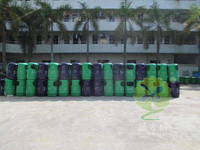 玻璃钢户外街道垃圾桶采用优质玻璃纤维与进口树脂着色合成,采用模具一次成型。玻璃钢造型精美、洁净、美观、醒目、不退色,它具有强度玻璃钢小区分类垃圾桶高、耐腐蚀、耐酸碱、抗老化、太阳暴晒下不变形、抗紫外线、操作方便等特点是其他材质无法取代的。产品颜色及丝印可按客户要求定制,无毒无污染,长久使用不褪色油漆不脱落。玻璃钢垃圾箱玻璃钢垃圾收集箱适用于小区、市政、工厂、学校、物业等户外垃圾桶的配置。