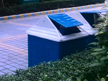 玻璃钢小区分类垃圾桶采用优质玻璃纤维与进口树脂着色合成,采用模具一次成型。玻璃钢造型精美、洁净、美观、醒目、不退色,它具有强度玻璃钢小区分类垃圾桶高、耐腐蚀、耐酸碱、抗老化、太阳暴晒下不变形、抗紫外线、操作方便等特点是其他材质无法取代的。产品颜色及丝印可按客户要求定制,无毒无污染,长久使用不褪色油漆不脱落。玻璃钢垃圾箱玻璃钢垃圾收集箱适用于小区、市政、工厂、学校、物业等户外垃圾桶的配置。