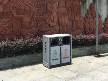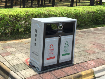 户外仿大理石玻璃钢垃圾桶采用优质玻璃纤维与进口树脂着色合成,采用模具一次成型。玻璃钢造型精美、洁净、美观、醒目、不退色,它具有强度高、耐腐蚀、耐酸碱、抗老化、太阳暴晒下不变形、抗紫外线、操作方便等特点是其他材质无法取代的。产品颜色及丝印可按客户要求定制,无毒无污染,长久使用不褪色油漆不脱落。玻璃钢垃圾箱玻璃钢垃圾收集箱适用于小区、市政、工厂、学校、物业等户外垃圾桶的配置。