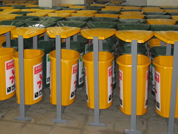 户外环保定制玻璃钢分类果皮箱采用优质玻璃纤维与进口树脂着色合成,采用模具一次成型。玻璃钢造型精美、洁净、美观、醒目、不退色,它具有强度玻璃钢小区分类垃圾桶高、耐腐蚀、耐酸碱、抗老化、太阳暴晒下不变形、抗紫外线、操作方便等特点是其他材质无法取代的。产品颜色及丝印可按客户要求定制,无毒无污染,长久使用不褪色油漆不脱落。玻璃钢垃圾箱玻璃钢垃圾收集箱适用于小区、市政、工厂、学校、物业等户外垃圾桶的配置。