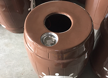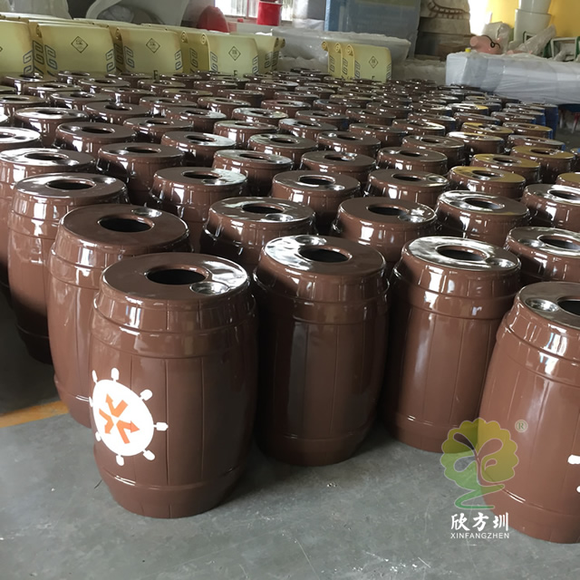 室内玻璃钢分类垃圾桶采用了玻璃纤维配合环氧树脂开模制作而成,简称玻璃钢是一种复合材料,立式直投口圆柱形双分类设计,采用了多道工序打磨最后喷上巧克力色汽车漆,水桶形状竖条纹路,顶部圆形立式直投口方便扔废物,旁边带一个小型烟灰盅方便丢弃烟头,圆柱形玻璃钢内筒,我们厂家支持开模定制各种各样玻璃钢垃圾桶。