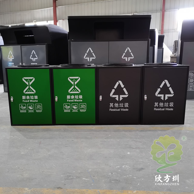 组合式直投口304不锈钢分类垃圾桶这款垃圾桶制作精良,户外组合式方形设计,适合摆放在物业小区、市政街道、旅游景区等等,注重产品细节部位处理坚固耐用,安全无利口,不伤手,304不锈钢外筒,不锈钢内筒 ,便于垃圾清倒,我们欣方圳厂家支持来图来样定制,欢迎咨询我们的咨询客服进行报价。