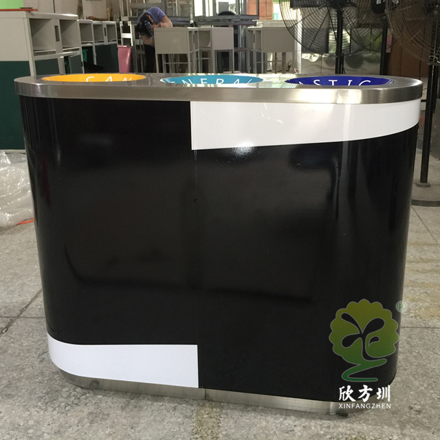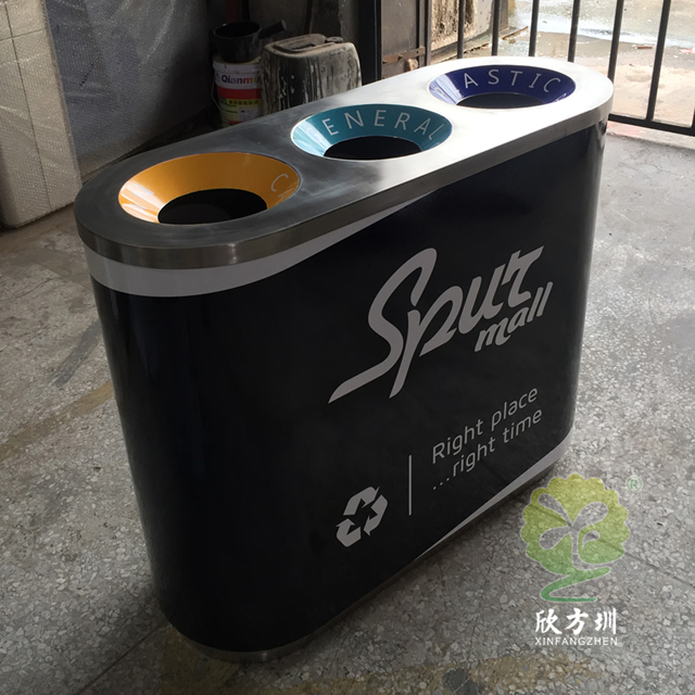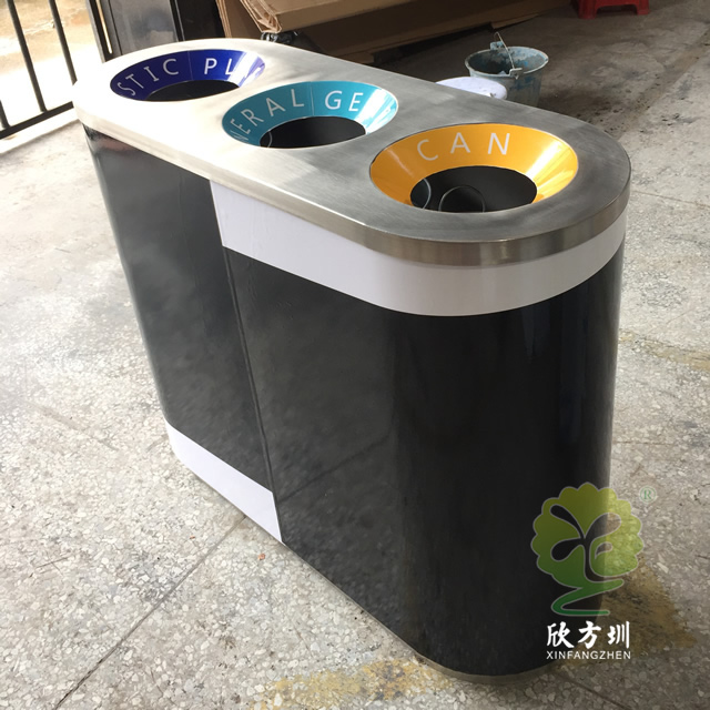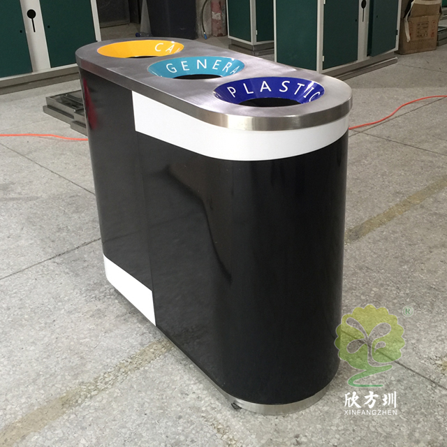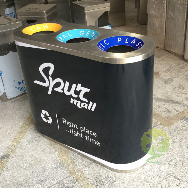 出口室内机场三分类不锈钢垃圾桶制作精良,三分类立式直投口设计,注重产品细节部位处理坚固耐用,安全无利口,不伤手,201#不锈钢外筒,圆柱形镀锌板内筒,或者选择:不锈钢、塑料、玻璃钢等内筒制作,便于垃圾清倒;适合摆放场景:室内机场、购物商城、地铁、高铁站、车站等等。
