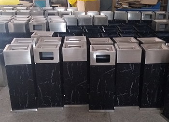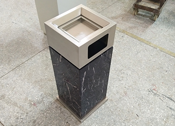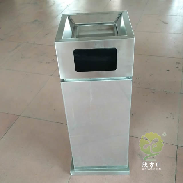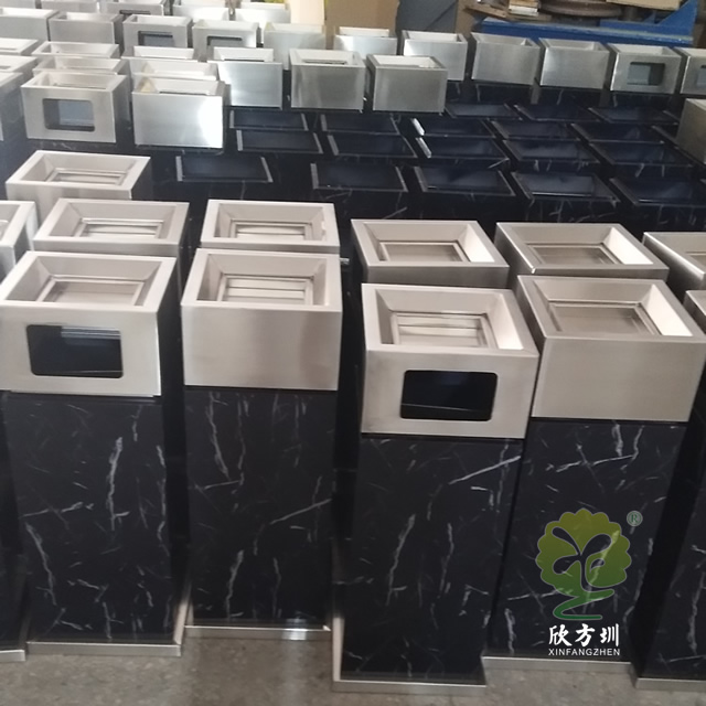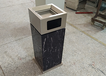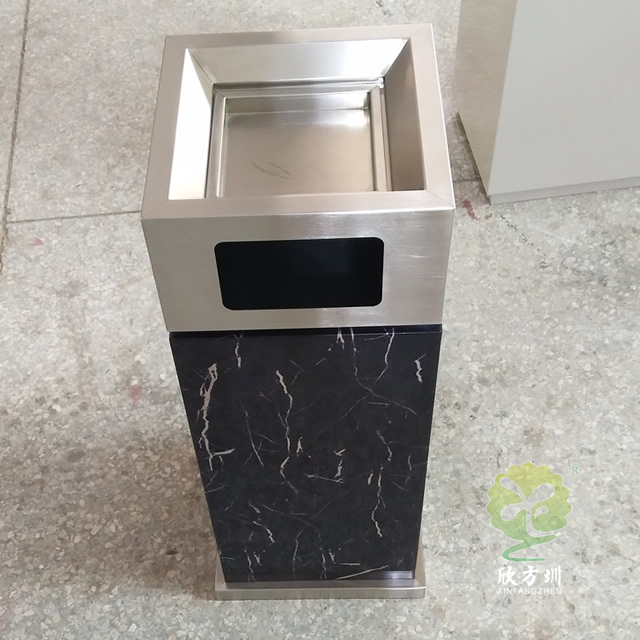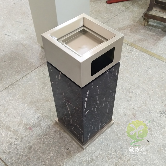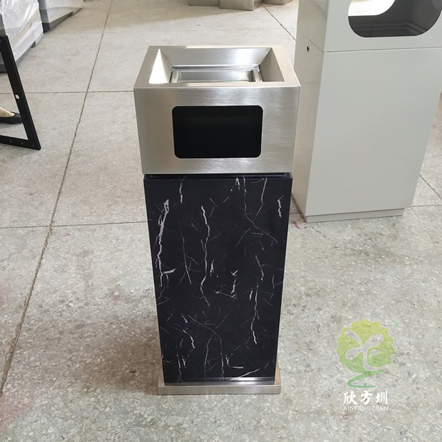 电镀大理石纹不锈钢果皮箱采用了201不锈钢1.0厚的板制造而成,采用了电镀转大理石纹方形设计工艺,盖子是不锈钢本色的,可以取出拿出内筒,单个方形投口,顶部带一个方形的烟灰盅,烟灰盅底部可以放石英砂方便灭烟使用,适合摆放在电梯口、办公室等场景。
