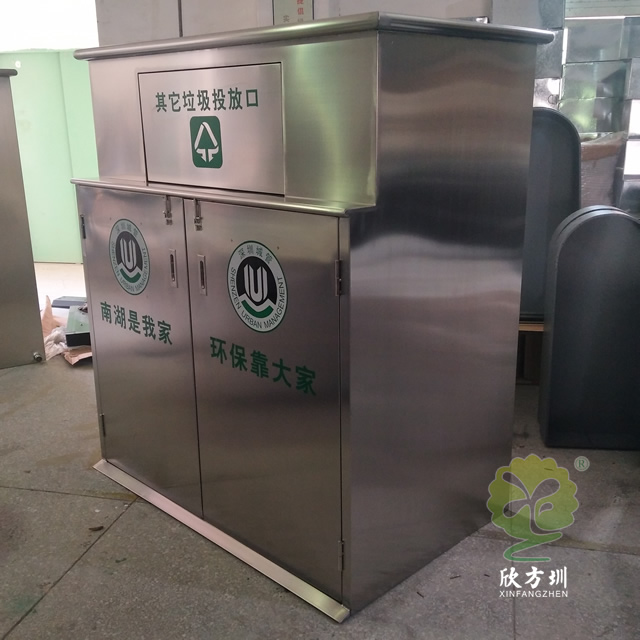大型户外不锈钢回收箱垃圾房制作精良,大号方形垃圾箱摇盖式设计,注重产品细节部位处理坚固耐用,安全无利口,不伤手,201不锈钢外筒,方形塑料垃圾桶内筒,或者选择:镀锌板、不锈钢、玻璃钢等内筒制作,便于垃圾清倒;适合摆放场景:街道、城中村、工业区、物业小区、社区等垃圾密集的地方。