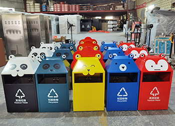 户外卡通动物五色不锈钢分类垃圾桶制作精良,分类组合式彩色不锈钢设计,注重产品细节部位处理坚固耐用,安全无利口,不伤手,垃圾箱可以采用304#或201不锈钢外筒,方形镀锌板内筒,或者选择:不锈钢、塑料、玻璃钢等内筒制作,便于垃圾清倒,适合摆放场景:户外物业小区、旅游景区、市政道路、物业小区、公园园林等等。
