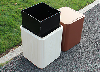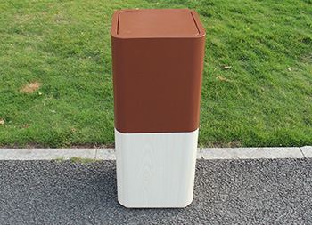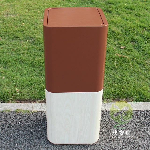 室内电镀仿木纹不锈钢果皮箱采用优质的201不锈钢板制作而成,采用方形电镀仿木纹摇盖式设计,外桶电镀双色桶身底下半部是白色转木纹效果,上半部分是仿古铜色也可以电镀香槟金色,黑色电镀方形不锈钢内胆,桶身是组合式的把外桶的上半部分拿出来就可以方便的取出内筒,内筒旁边有两个把手啊可以方便提出里面的垃圾进行清理!