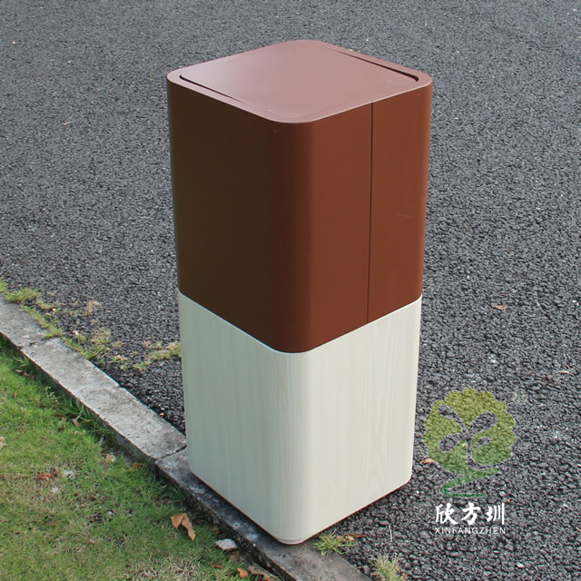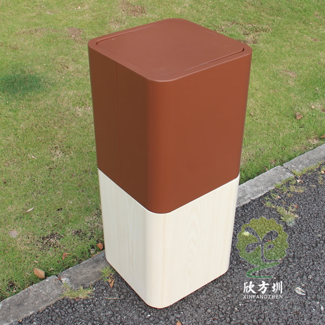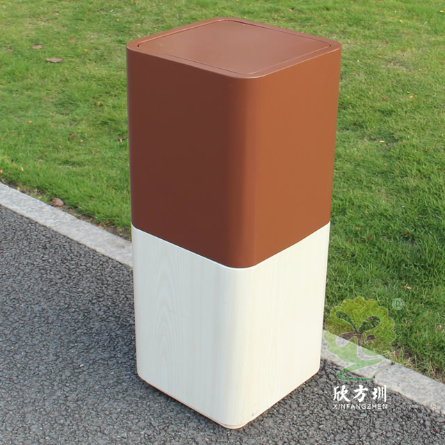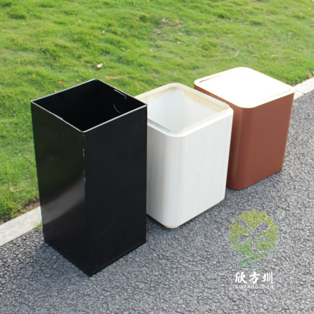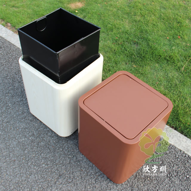 室内电镀仿木纹不锈钢果皮箱制作精良,单筒方形电镀古铜色转木纹设计,注重产品细节部位处理坚固耐用,安全无利口,不伤手,201不锈钢外筒,方形镀锌板内筒,或者选择:不锈钢、塑料、玻璃钢等内筒制作,便于垃圾清倒;适合摆放场景:物业小区电梯口、学校医院、娱乐场所、购物商城等等。