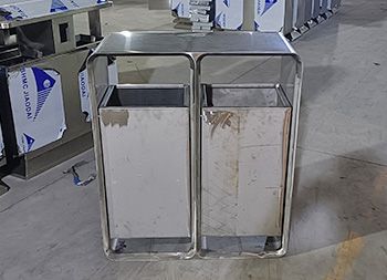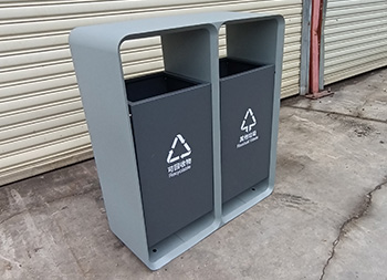 户外方形喷塑不锈钢分类垃圾桶这款垃圾桶制作精良,喷塑双分类垃圾桶设计,适合摆放在物业小区、市政街道、旅游景区等等,注重产品细节部位处理坚固耐用,安全无利口,不伤手,框架201不锈钢外筒,镀锌板内筒也可以选择塑料、不锈钢、玻璃钢等等,便于垃圾清倒。
