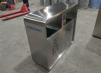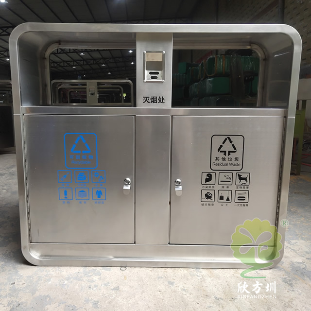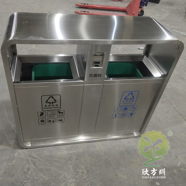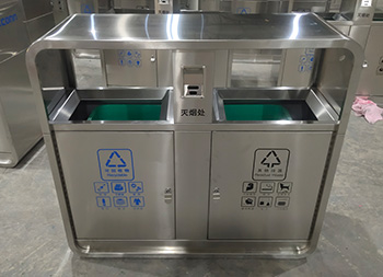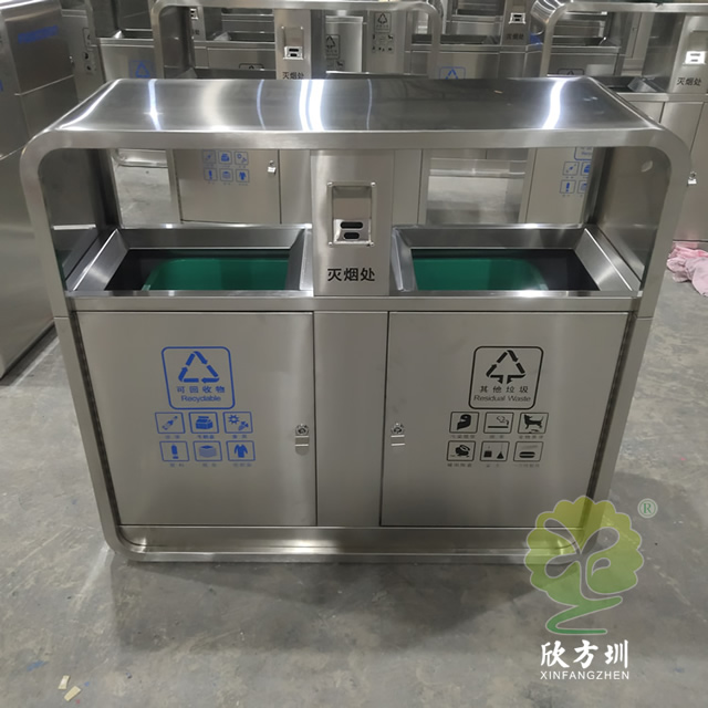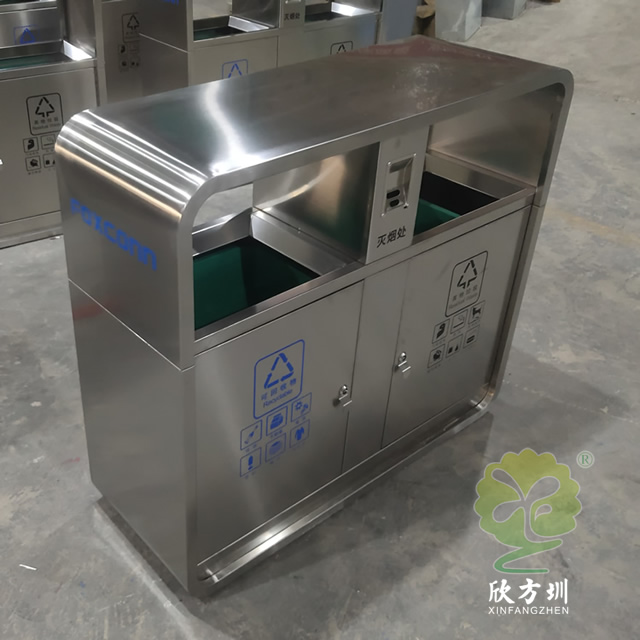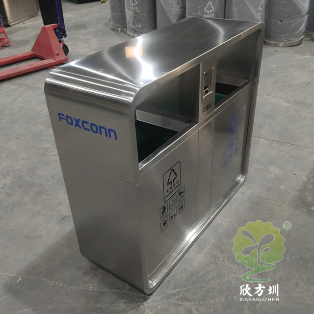 富士康304户外不锈钢分类垃圾桶这款垃圾桶制作精良,不锈钢本色双分类垃圾桶设计,适合摆放在物业小区、市政街道、旅游景区等等,注重产品细节部位处理坚固耐用,安全无利口,不伤手,整体框架304不锈钢外筒,玻璃钢内筒也可以选择塑料、镀锌板、不锈钢等等,便于垃圾清倒。