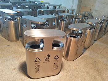 高档小区双分类不锈钢垃圾桶可选用201#,202#,304#不同型号的不锈钢材质,生产的成品价格也会不同,不同型号材质表面加工不同抗腐蚀能力也是有区别的,腐蚀环境要求光滑的表面是因为表面光滑不容易积垢,污垢的沉积会使不锈钢生锈甚至造成腐蚀。表面还可做防指纹处理,指纹手印虽然可以擦掉,但影响美观,所以可根据客户需求选用防指纹处理。若觉得不锈钢本色比较单调,那么你可选择产品表面电镀工艺,钛金、玫瑰金等颜色高档美观,可定制各种色彩和各种不锈钢垃圾桶款式。