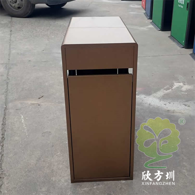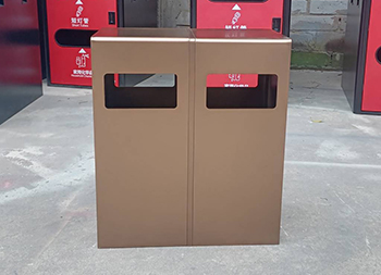 户外电镀滑轨抽拉式不锈钢分类垃圾桶制作精良,喷塑户外连体两分类方形垃圾桶设计,适合摆放在室内物业小区、市政街道、广场、工业区道路或公园景区等等,注重产品细节部位处理坚固耐用,安全无利口,不伤手,框架304不锈钢外筒,不锈钢内筒也可以选择镀锌板、塑料、玻璃钢等等,便于垃圾清倒。