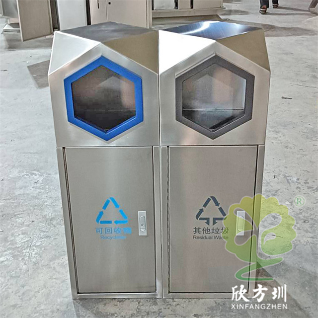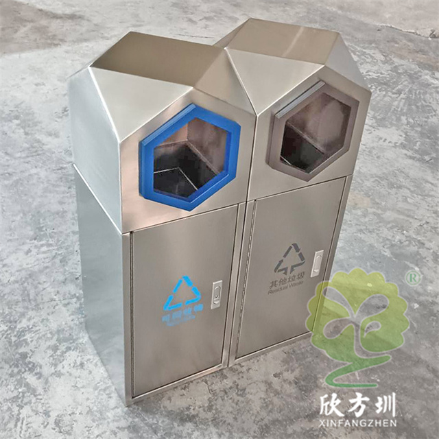 户外菱形组合式不锈钢分类垃圾桶这款垃圾桶制作精良,镜面不锈钢本色户外连体两分类方形垃圾桶设计,适合摆放在室内物业小区、市政街道、广场、工业区道路或公园景区等等,注重产品细节部位处理坚固耐用,安全无利口,不伤手,框架201不锈钢外筒,不锈钢内筒也可以选择镀锌板、塑料、玻璃钢等等,便于垃圾清倒。