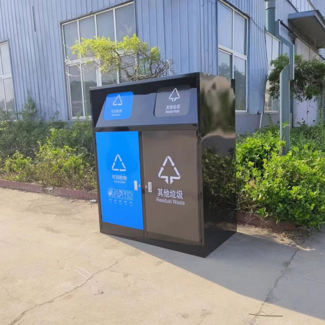 户外密闭式带盖240升不锈钢分类垃圾桶制作精良,不锈钢本色户外连体两分类方形垃圾桶设计,适合摆放在室内物业小区、市政街道、广场、工业区道路或公园景区等等,注重产品细节部位处理坚固耐用,安全无利口,不伤手,框架201不锈钢外筒,不锈钢内筒也可以选择镀锌板、塑料、玻璃钢等等,便于垃圾清倒。