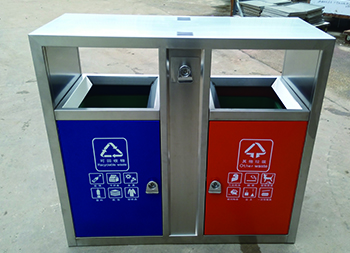 街道市政两分类不锈钢垃圾桶采用201#,202#,304#优质不锈钢材料模压成型,坚固耐用,不易破损;耐火安全,抗高低温,适合各种恶劣气候条件;金属亮泽,高雅美观,广泛适用于各种场所;内外表面光洁,减少垃圾残留,易于清洁; 街道市政两分类不锈钢垃圾桶制作精良,双分类设计,注重产品细节部位处理坚固耐用,安全无利口,不伤手,201不锈钢外筒,玻璃钢内筒 ,便于垃圾清倒。