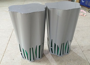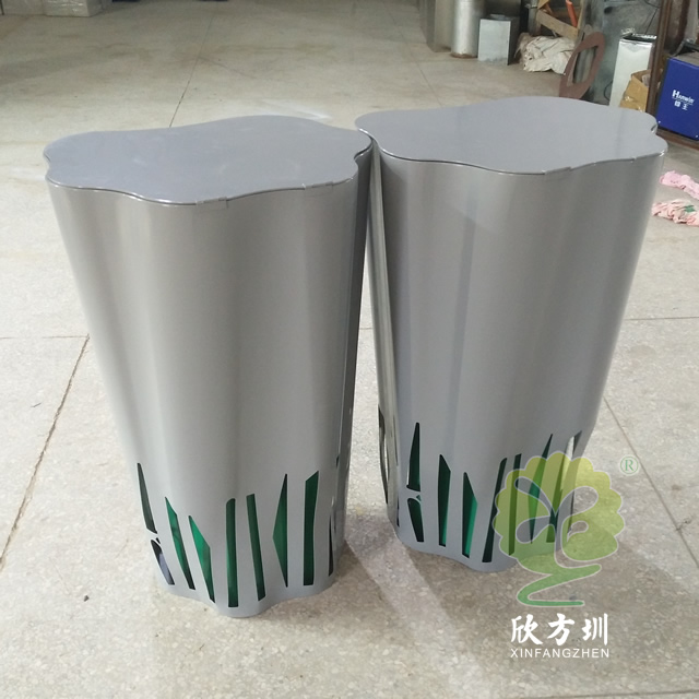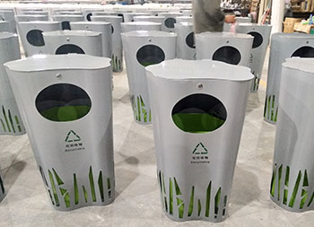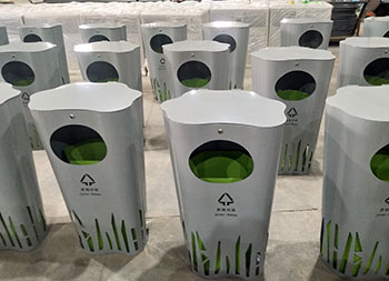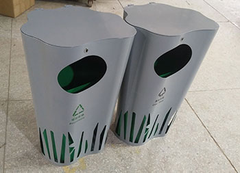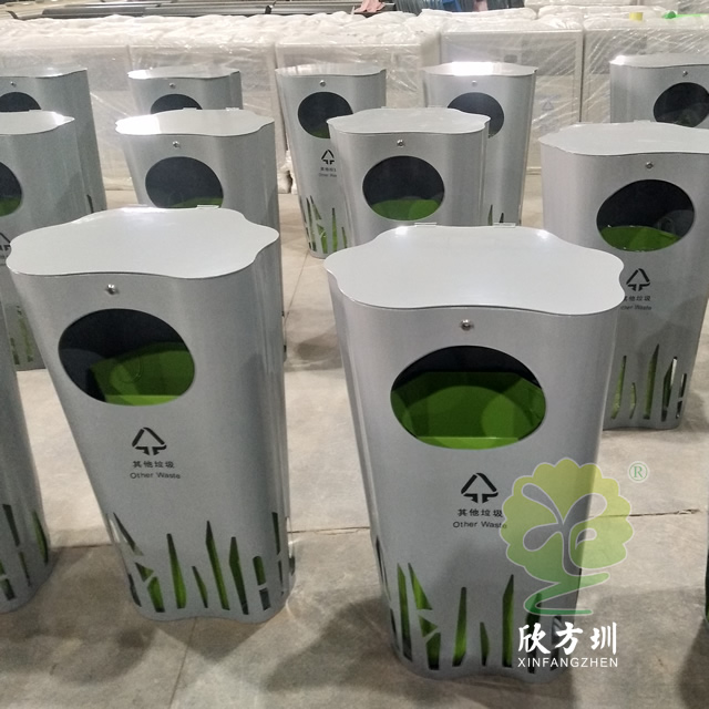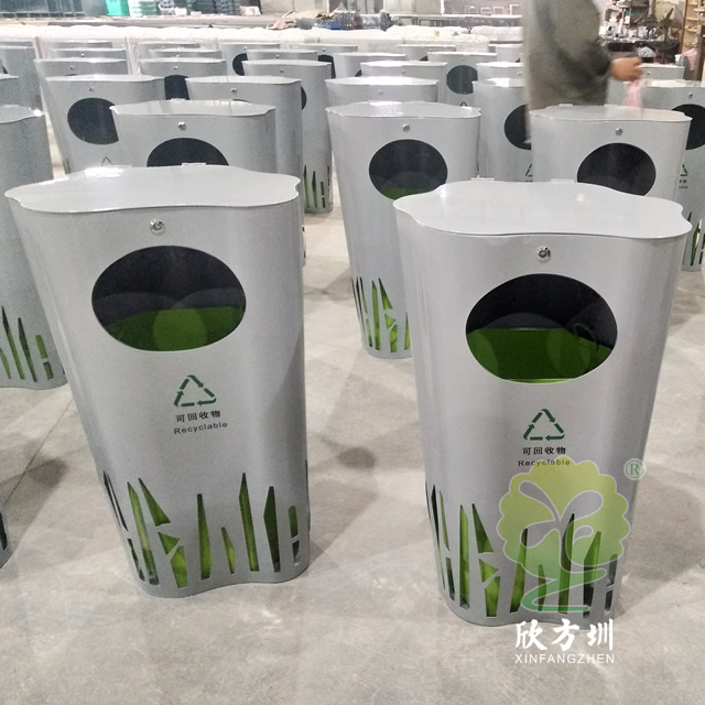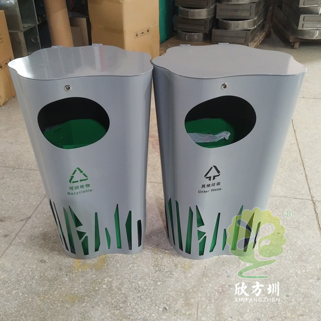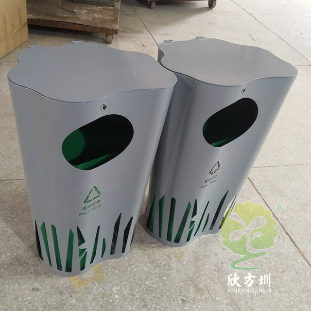 喷塑异形不锈钢分类垃圾桶整体采用304不锈钢板制作而成,工艺桶全身喷塑盖子厚度2.0mm、桶身1.5mm、内筒0.8mm,可回收垃圾、其他垃圾异形双桶带盖投口圆形设计,外桶喷塑灰色内筒喷塑绿色。