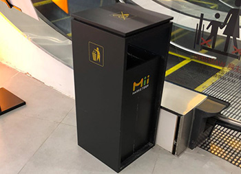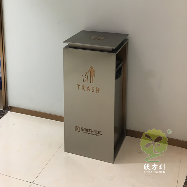 商场电梯口方形不锈钢垃圾桶长330mm宽330mm高760mm可以选用优质的304、201等型号的不锈钢板制作,整体方形单筒抽屉式设计,logo企业名称采用腐刻工艺来制作,这款支持定制可以做本色、电镀土豪金、玫瑰金、烤漆等等颜色,这款垃圾桶外观大气时尚。