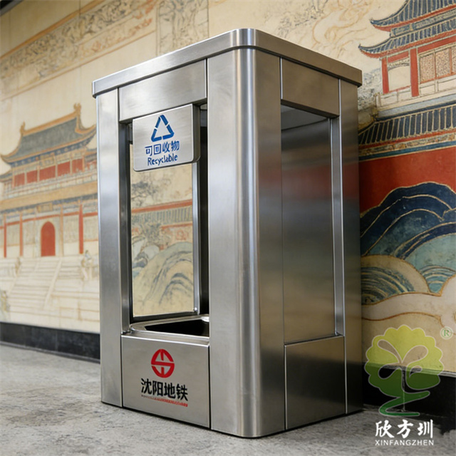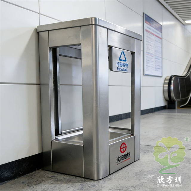 沈阳室内地铁站防爆分类不锈钢垃圾桶制作精良,不锈钢本色户外连体两分类方形垃圾桶设计,适合摆放在室内物业小区、市政街道、广场、工业区道路或公园景区等等,注重产品细节部位处理坚固耐用,安全无利口,不伤手,框架201不锈钢外筒,不锈钢内筒也可以选择镀锌板、塑料、玻璃钢等等,便于垃圾清倒。