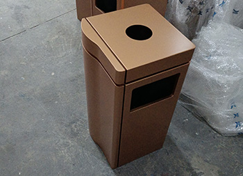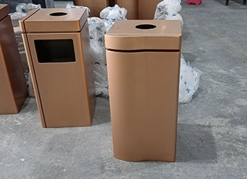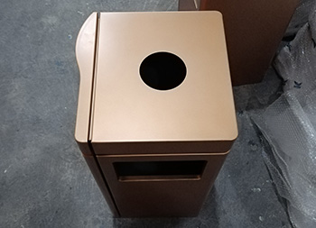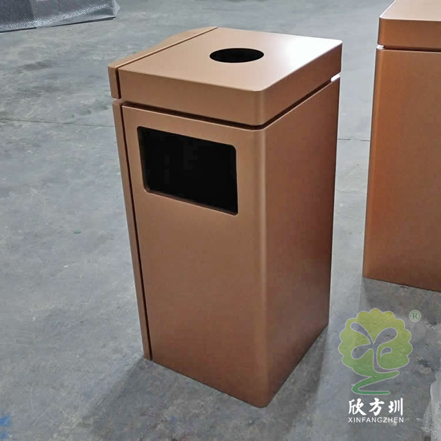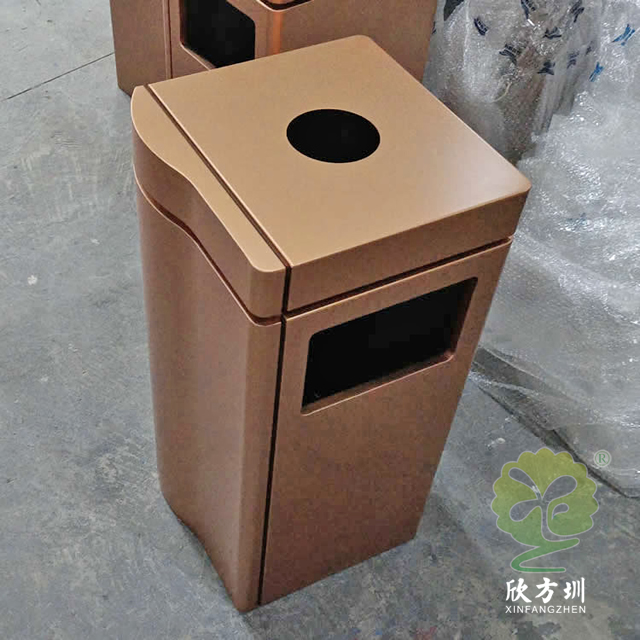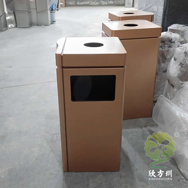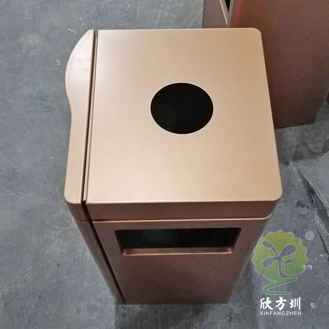 室内电镀不锈钢环保果皮箱采用了201#不锈钢板制作而成,外观方形流行曲线设计,外桶电镀香槟金,这款侧面投口,可以定制其他颜色以及直投口或者摇盖式,可以选用钢板或者镀锌板以及304不锈钢板制造此款垃圾桶,欣方圳厂家是专业定制商场电梯口垃圾桶,欢迎来图来样板进来咨询报价。