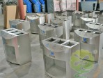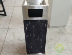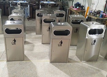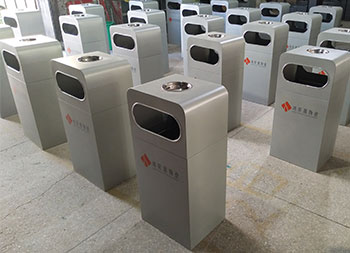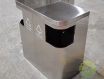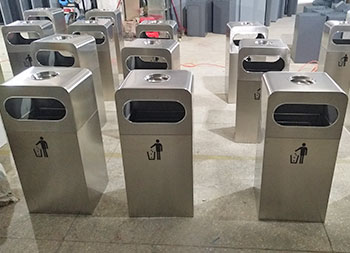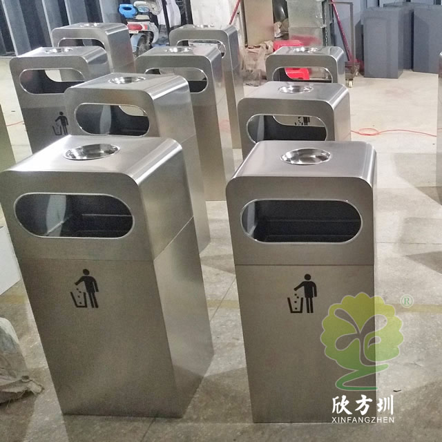 室内商场方形不锈钢果皮箱采用201#不锈钢板折弯焊接组装而成,金属表面处理可以选择哑光、镜光、电镀、烤漆等改变表面色泽,内筒配备是镀锌板内筒,外观方形双面投口顶部带烟灰盅设计,丝网印刷了垃圾标识,这款垃圾桶适合摆放室内商场、酒店、公寓、小区等电梯口旁边。