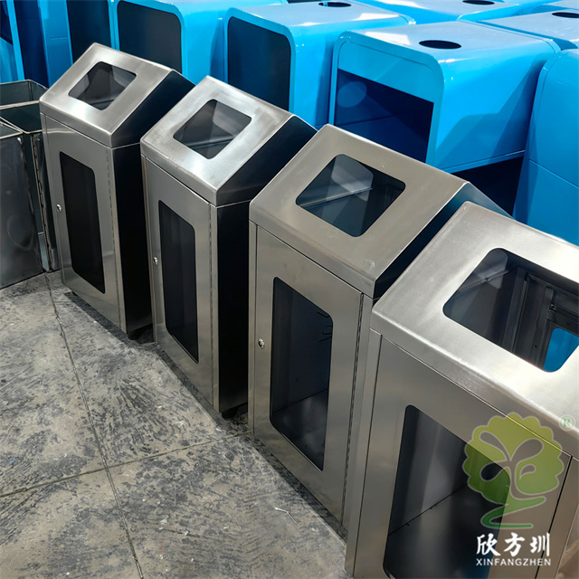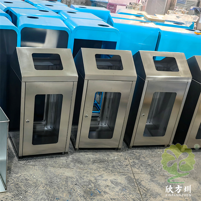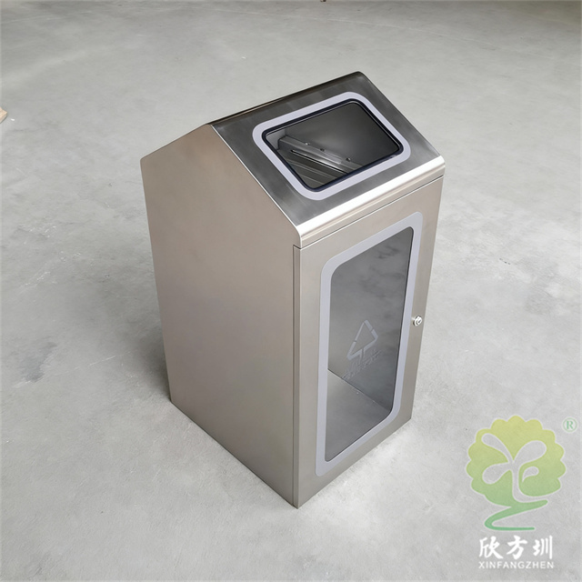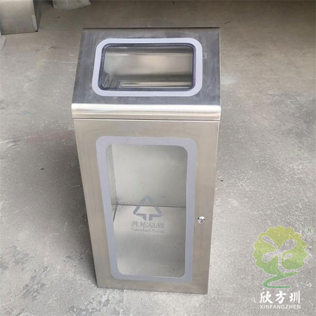 室内商用防爆组合式不锈钢分类垃圾桶制作精良,不锈钢本色户外连体两分类方形垃圾桶设计,适合摆放在室内物业小区、市政街道、广场、工业区道路或公园景区等等,注重产品细节部位处理坚固耐用,安全无利口,不伤手,框架201不锈钢外筒,不锈钢内筒也可以选择镀锌板、塑料、玻璃钢等等,便于垃圾清倒。