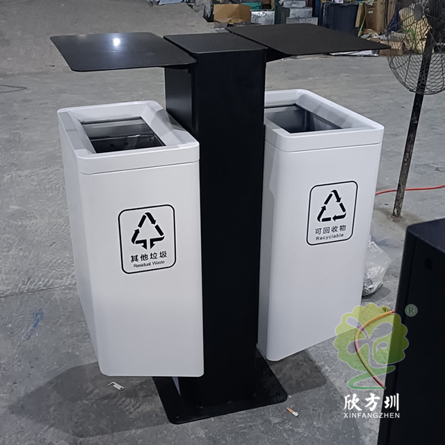 市政道路喷塑不锈钢分类果皮箱这款垃圾桶制作精良,烤漆双分类垃圾桶设计,适合摆放在物业小区、市政街道、旅游景区等等,注重产品细节部位处理坚固耐用,安全无利口,不伤手,整体框架201不锈钢外筒,不锈钢内筒也可以选择塑料、镀锌板、玻璃钢等等,便于垃圾清倒。