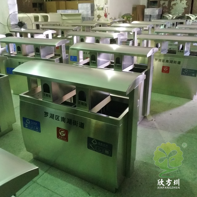 市政街道三分类不锈钢垃圾箱制作精良,三分类方形哑光弧形设计,注重产品细节部位处理坚固耐用,安全无利口,不伤手,304#不锈钢外筒,方形镀锌板内筒,或者选择:不锈钢、塑料、玻璃钢等内筒制作,便于垃圾清倒;适合摆放场景:物业小区、学校、市政街道、公园等等。