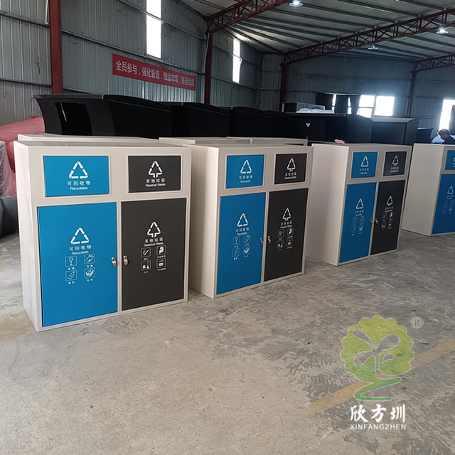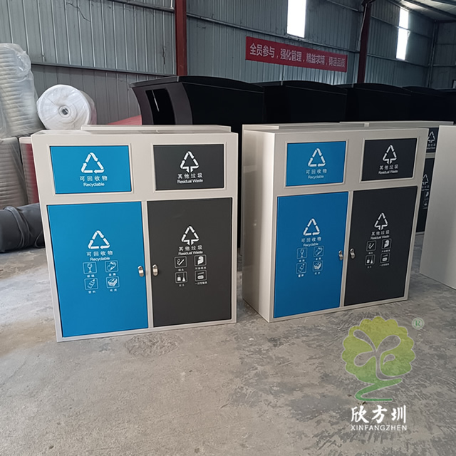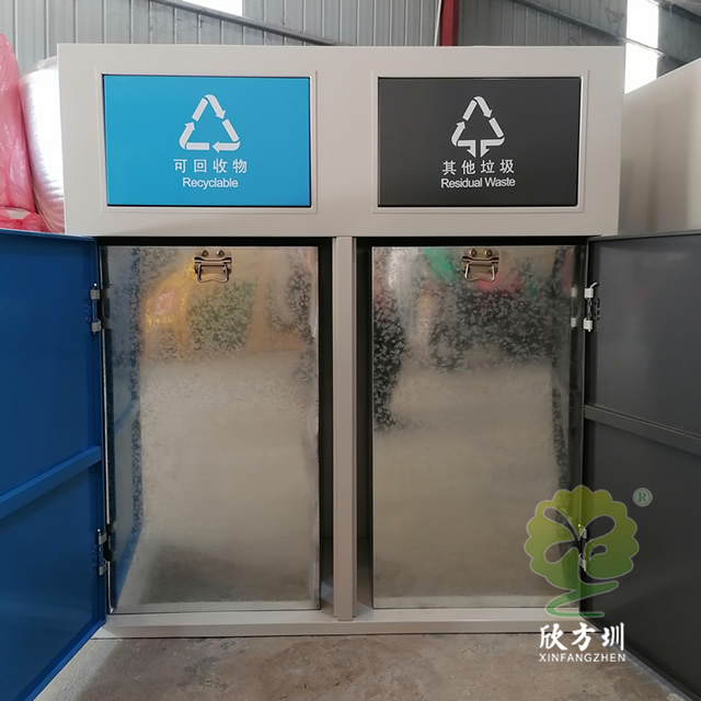 户外方形不锈钢连体分类垃圾箱制作精良,双分类方形连体设计,注重产品细节部位处理坚固耐用,安全无利口,不伤手,垃圾箱可以采用304#或201不锈钢外筒,方形镀锌板内筒,或者选择:不锈钢、塑料、玻璃钢等内筒制作,便于垃圾清倒,适合摆放场景:户外物业小区、旅游景区、市政道路、物业小区、公园园林等等。