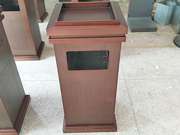 物业电梯口方形不锈钢果皮箱可选用201#,202#,304#不同型号的不锈钢材质,生产的成品价格也会不同,不同型号材质表面加工不同抗腐蚀能力也是有区别的,腐蚀环境要求光滑的表面是因为表面光滑不容易积垢,污垢的沉积会使不锈钢生锈甚至造成腐蚀。表面还可做防指纹处理,指纹手印虽然可以擦掉,但影响美观,所以可根据客户需求选用防指纹处理。若觉得不锈钢本色比较单调,那么你可选择产品表面电镀工艺,钛金、玫瑰金等颜色高档美观,可定制各种色彩和各种不锈钢垃圾桶款式。