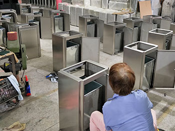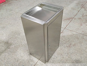 物业小区小型室内不锈钢果皮箱可选用201#,202#,304#不同型号的不锈钢材质,生产的成品价格也会不同,不同型号材质表面加工不同抗腐蚀能力也是有区别的,腐蚀环境要求光滑的表面是因为表面光滑不容易积垢,污垢的沉积会使不锈钢生锈甚至造成腐蚀。表面还可做防指纹处理,指纹手印虽然可以擦掉,但影响美观,所以可根据客户需求选用防指纹处理。若觉得不锈钢本色比较单调,那么你可选择产品表面电镀工艺,钛金、玫瑰金等颜色高档美观,可定制各种色彩和各种不锈钢垃圾桶款式。