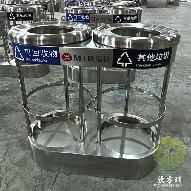 香港地铁站透明两分类不锈钢垃圾桶制作精良,不锈钢本色户外连体两分类方形垃圾桶设计,适合摆放在室内物业小区、市政街道、广场、工业区道路或公园景区等等,注重产品细节部位处理坚固耐用,安全无利口,不伤手,框架201不锈钢外筒,不锈钢内筒也可以选择镀锌板、塑料、玻璃钢等等,便于垃圾清倒。