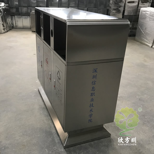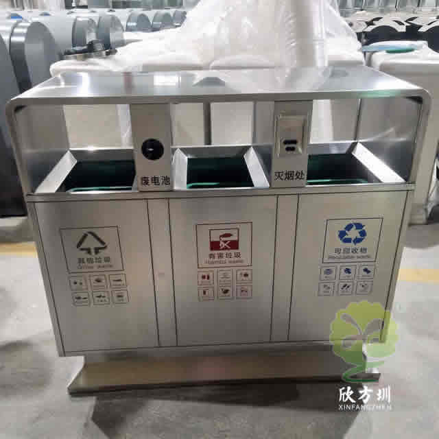 户外校园环卫三分类不锈钢垃圾桶制作精良,户外三分类方形设计,注重产品细节部位处理坚固耐用,安全无利口,不伤手,201#不锈钢外筒,方形玻璃钢内筒,或者选择:不锈钢、塑料、镀锌板等内筒制作,便于垃圾清倒;适合摆放场景:学校校园、公园景区、市政街道道路、物业小区等等。