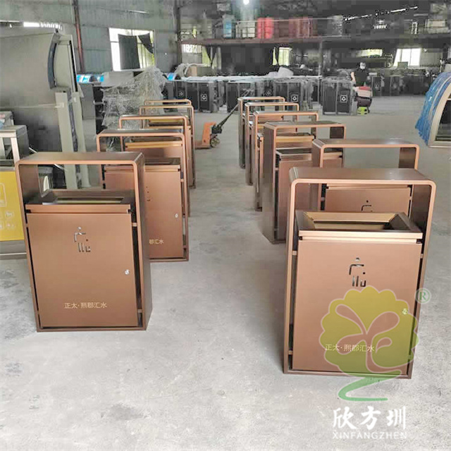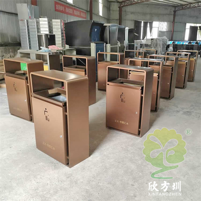 室内新楼盘电梯口电镀不锈钢垃圾桶这款果皮箱制作精良,电镀喷塑单筒方形垃圾桶设计,适合摆放在室内物业小区电梯口、宾馆酒店、写字楼或公园景区等等,注重产品细节部位处理坚固耐用,安全无利口,不伤手,框架201不锈钢外筒,镀锌板内筒也可以选择塑料、不锈钢、玻璃钢等等,便于垃圾清倒。