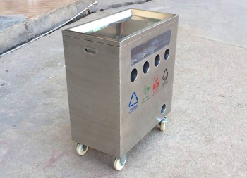 幼儿园训练分类不锈钢垃圾桶制作精良,四分类培训分类设计,适合学校的学前班、大中小班幼儿园等等,注重产品细节部位处理坚固耐用,安全无利口,不伤手,201不锈钢外筒,桶没有内筒 ,便于学习垃圾分类。