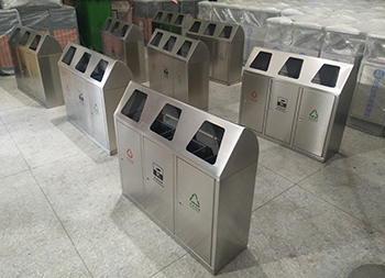 摇盖三分类不锈钢垃圾桶采用201#优质不锈钢材料模压成型,内筒采用玻璃钢,坚固耐用,不易破损;耐火安全,抗高低温,适合各种恶劣气候条件;三分类垃圾桶丝印了不可回收垃圾、可回收垃圾、有害垃圾,可以更换标识丝印logo。 摇盖三分类不锈钢垃圾桶制作精良,三分类有带盖设计防止异味散发,注重产品细节部位处理坚固耐用,安全无利口,不伤手,201不锈钢外筒,玻璃钢内筒 ,便于垃圾清倒。