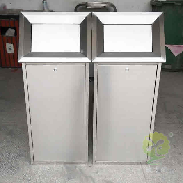 室内摇盖式不锈钢分类垃圾桶制作精良,两分类方形屋形摇盖式设计,注重产品细节部位处理坚固耐用,安全无利口,不伤手,304不锈钢外筒,不锈钢方形内筒 ,便于垃圾清倒。