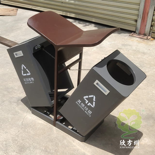 户外喷塑不锈钢分类垃圾桶这款垃圾桶制作精良,喷塑双分类垃圾桶设计,适合摆放在物业小区、市政街道、旅游景区等等,注重产品细节部位处理坚固耐用,安全无利口,不伤手,框架201不锈钢外筒,镀锌板内筒也可以选择塑料、不锈钢、玻璃钢等等,便于垃圾清倒。