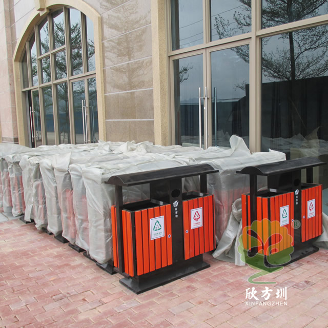 户外市政公园两分类钢木垃圾桶是一种公共设施、用于盛放户外垃圾和废弃物,常放置于公园、景区、小区、学校,等户外公共场所。起到保护公共环境的作用,为城市的干净整洁做出了卓越的贡献。