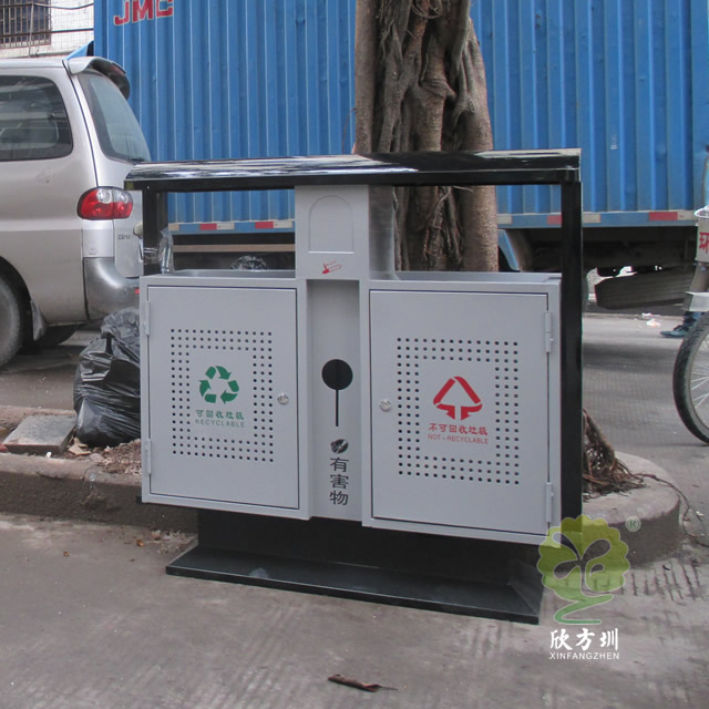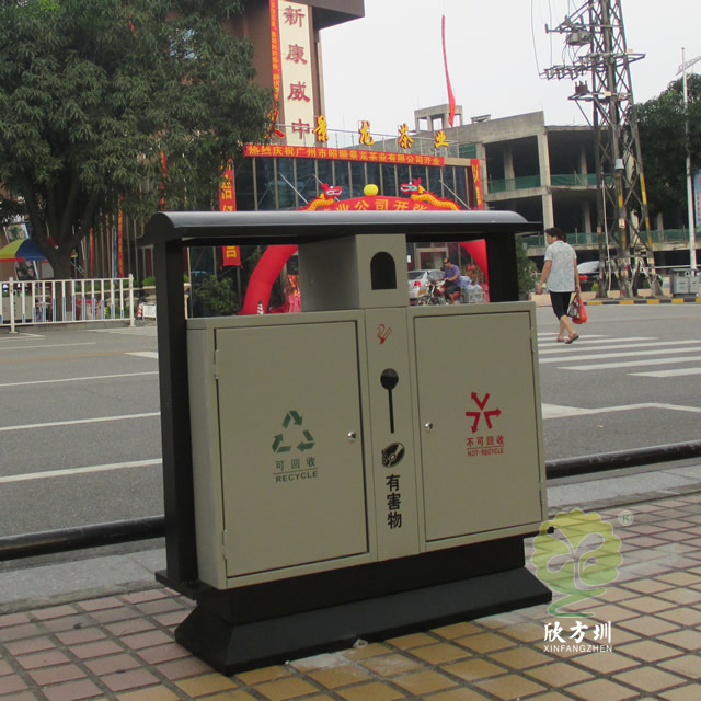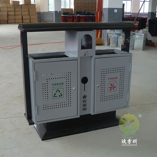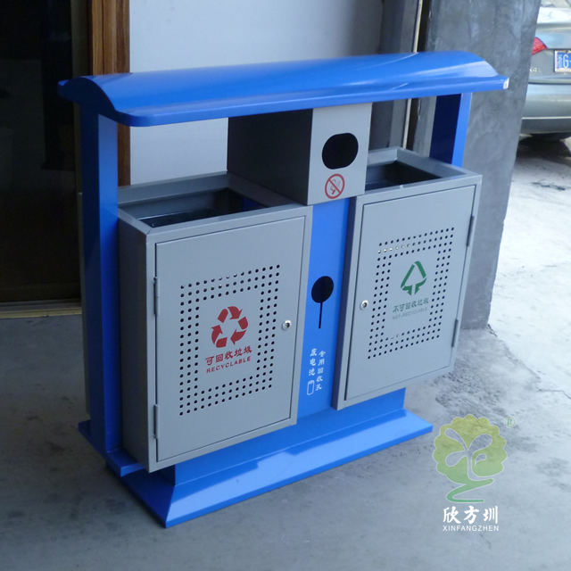 室外烤漆冲孔钢板分类垃圾桶广泛适用于户外收集果皮垃圾、烟头、有害物,钢制垃圾桶采用优质的冷轧冲孔钢板制作色泽亮丽美观,内筒标配为镀锌板可以另选塑料、玻璃钢、不锈钢、或者塑料内桶等;适合摆放在:街道、物业、小区、公园景区等人口密集路口旁边;冷轧钢并具有防潮、防火、防腐、防蛀、防锈、耐高温、易清理不脱落,不起层使用寿命长等特点。