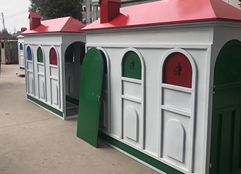 户外大型分类钢制垃圾屋这款垃圾箱采用了冷轧钢板裁剪制作而成,屋形长方形推盖设计,盖子顶部丝印了logo和分类垃圾集资房,盖子下方丝印了卫生间垃圾、厨余垃圾和其他垃圾,屋顶烤漆了红色,整体桶身为白色高温烤漆,盖子丝网印刷了人头标烤漆了蓝色、绿色和红色,垃圾桶左右门烤漆了绿色可以使用三角钥匙开门,远处看就是一个栩栩如生的小房子。