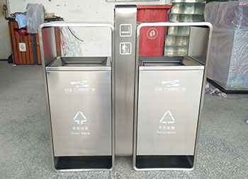 户外街道环卫分类钢制垃圾桶广泛适用于于垃圾分类收集,如城管系统;环卫系统,物业管理系统,小区、工厂、餐饮,城市道路、各类广场、企业单位、花园、公园、学校、医院、车站、码头、风景旅游区等公共场所。钢制垃圾桶不仅少有此类问题,也容易清洗。钢制垃圾桶采用优质的冷轧钢板制作色泽亮丽美观,并具有防潮、防火、防腐、防蛀、防锈、耐高温、易清理不脱落,不起层使用寿命长等特点。 工艺流程:表面经除油——清洗——酸洗——清洗——表调——磷化——清洗——烘干——静电粉末喷涂——高温塑化——冷却。