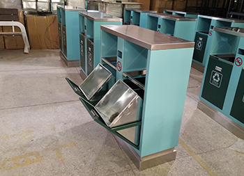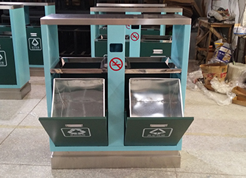 学校校园户外两分类钢制垃圾箱广泛适用于于垃圾分类收集,如城管系统;环卫系统,物业管理系统,小区、工厂、餐饮,城市道路、各类广场、企业单位、花园、公园、学校、医院、车站、码头、风景旅游区等公共场所。钢制垃圾桶不仅少有此类问题,也容易清洗。钢制垃圾桶采用优质的冷轧钢板制作色泽亮丽美观,并具有防潮、防火、防腐、防蛀、防锈、耐高温、易清理不脱落,不起层使用寿命长等特点。
