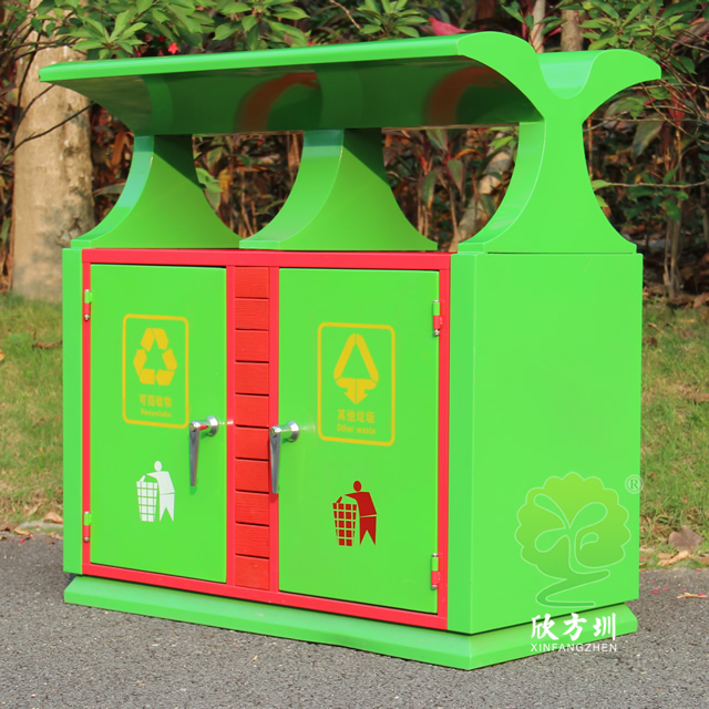 园林冷轧钢板分类垃圾箱广泛适用于户外垃圾分类收集,钢制垃圾桶采用优质的冷轧钢板制作色泽亮丽美观,内筒标配为镀锌板可以另选塑料、玻璃钢、不锈钢、或者塑料内桶等,冷轧钢并具有防潮、防火、防腐、防蛀、防锈、耐高温、易清理不脱落,不起层使用寿命长等特点。