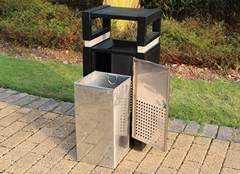 方形组合式钢板分类垃圾桶广泛适用于户外垃圾分类收集,钢制垃圾桶采用优质的冷轧钢板制作色泽亮丽美观,内筒标配为镀锌板可以另选塑料、玻璃钢、不锈钢、或者塑料内桶等,冷轧钢并具有防潮、防火、防腐、防蛀、防锈、耐高温、易清理不脱落,不起层使用寿命长等特点。
