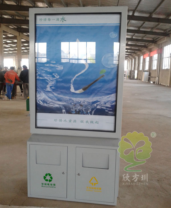 公益广告垃圾桶产品造型经典时尚,整体结构牢靠,箱体箱底连体式设计,底座可固定地上,抗打击,抗风力。控制箱体高度,广告桶高度设计在1.8米左右,符合城市规划要求。独特的抽屉式斜插内桶减轻环卫工人清理劳动强度,投口与清理口一体设计,便于垃圾入箱及清理。广告垃圾桶具有投入成本低,直接受众效果好。相比较其他形式的广告而言垃圾桶广告的成本相当低而且是直接面向广告受众,贴进消费者,形成高覆盖网络规模广告效应。比起电视和报纸广告来说有着无法拟比的优势。