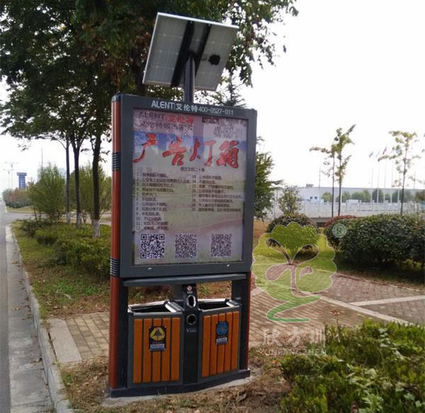 节能广告垃圾桶产品造型经典时尚,整体结构牢靠,箱体箱底连体式设计,底座可固定地上,抗打击,抗风力。控制箱体高度,广告桶高度设计在1.8米左右,符合城市规划要求。独特的抽屉式斜插内桶减轻环卫工人清理劳动强度,投口与清理口一体设计,便于垃圾入箱及清理。广告垃圾桶具有投入成本低,直接受众效果好。相比较其他形式的广告而言垃圾桶广告的成本相当低而且是直接面向广告受众,贴进消费者,形成高覆盖网络规模广告效应。比起电视和报纸广告来说有着无法拟比的优势。