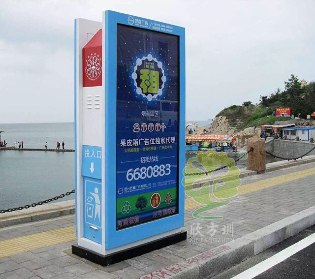 景区广告垃圾桶产品造型经典时尚,整体结构牢靠,箱体箱底连体式设计,底座可固定地上,抗打击,抗风力。控制箱体高度,广告桶高度设计在1.8米左右,符合城市规划要求。独特的抽屉式斜插内桶减轻环卫工人清理劳动强度,投口与清理口一体设计,便于垃圾入箱及清理。广告垃圾桶具有投入成本低,直接受众效果好。相比较其他形式的广告而言垃圾桶广告的成本相当低而且是直接面向广告受众,贴进消费者,形成高覆盖网络规模广告效应。比起电视和报纸广告来说有着无法拟比的优势。