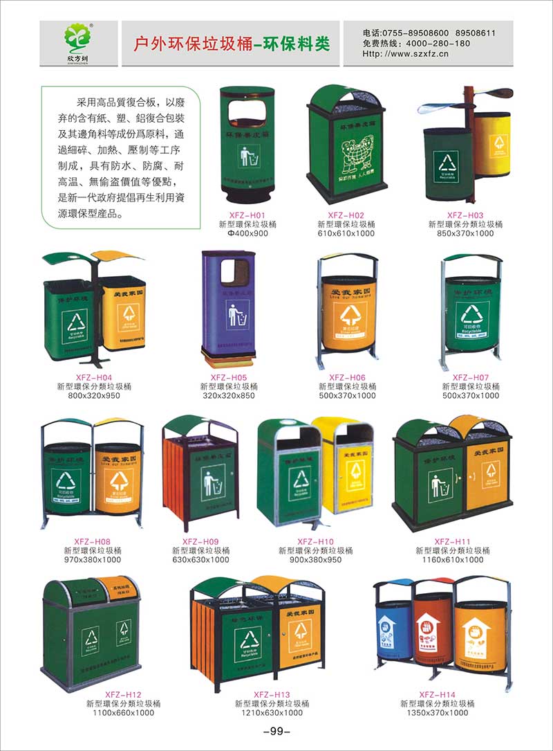 废弃物回收再利用,减轻废弃物带给我们的环境压力;材料可制作多种颜色和款式的垃圾桶,为我们的生活添彩。