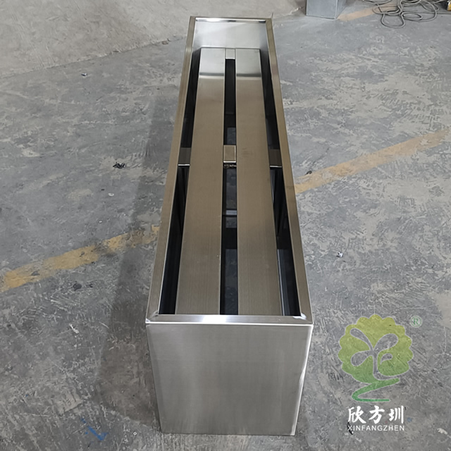 户外长方形201不锈钢花箱通过表面电镀压纹、水镀、蚀刻、电镀、无氰碱性亮铜、纳米镍、等技术的工艺处理,具有坚固耐用,抗老化,强度高,耐腐蚀,耐酸碱,等不易褐色使用寿命长的功效。不锈钢表面处理(镀钛、镜面、拉丝、蚀刻)加工工艺的提高,外观美观度实用等一系列产品特质更适用于室内外的工程使用。